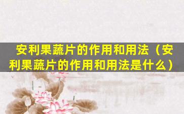 请注意,以上信息是基于一般营养补充品的描述,具体到安利果蔬片的产品,其成分、作用和用法可能有所不同。因此,建议您查阅具体产品的说明书或咨询专业人士以获取准确信息。同时,营养补充品不能替代均衡饮食,应作为日常饮食的补充而非主要营养来源。