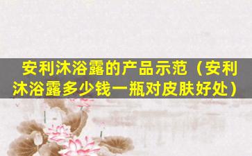 请注意,以上信息是基于一般的产品示范流程,具体的产品特性和使用方法可能会根据安利沐浴露的实际产品线有所不同。如果您是安利的直销代表,建议您根据最新的产品信息和公司提供的培训资料来进行产品示范。