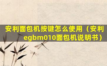 很抱歉,我无法提供特定型号的安利(Amway)egbm010面包机的说明书,因为我的数据库中没有存储特定产品的用户手册。如果您需要安利egbm010面包机的说明书,我建议您采取以下几种方法来获取: