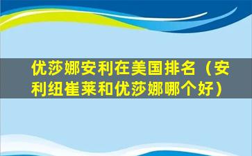关于“优莎娜安利在美国排名”的问题,需要澄清的是,“优莎娜”和“安利”是两个不同的公司。优莎娜(USANA Health Sciences)是一家总部位于美国犹他州的直销公司,主要生产和销售营养补充品、个人护理产品等。而安利(Amway)是一家总部位于美国密歇根州的全球性直销公司,同样提供营养品、个人护理、家居护理等多种产品。