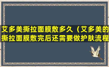 艾多美(Etude House)的撕拉面膜通常建议敷15到20分钟。在使用撕拉面膜之前,请确保阅读产品包装上的说明,因为不同品牌和类型的撕拉面膜可能有不同的建议使用时间。
