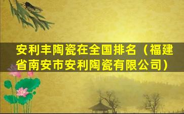 如果您需要了解“安利丰陶瓷”的具体排名或者市场表现,建议直接查询该品牌的官方信息或者通过行业报告、市场研究等渠道获取最新的数据。同时,也可以关注相关的行业展会、评比活动等,这些通常会提供一些品牌排名的参考信息。
