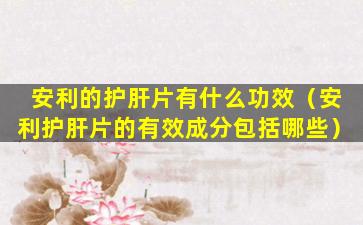 安利(Amway)是一家全球性的直销公司,其产品线涵盖了营养补充品、个人护理品、家居护理品等多个领域。在营养补充品中,安利确实有一款名为“护肝片”的产品,通常被称为“肝宝”或“肝保健片”。