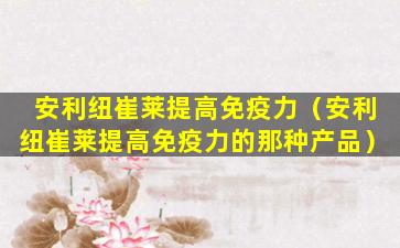 安利纽崔莱(Amway Nutrilite)是一家知名的营养补充品品牌,提供多种维生素、矿物质和植物营养素的产品。如果您在寻找提高免疫力的产品,安利纽崔莱有几款产品可能符合您的需求: