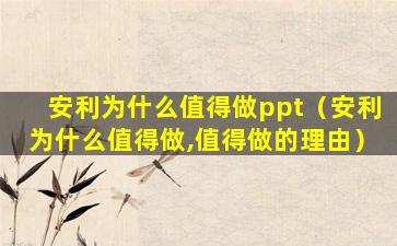 安利(Amway)是一家全球知名的直销公司,其产品涵盖健康、美容、家居护理等多个领域。在制作关于“安利为什么值得做”的PPT时,可以从以下几个方面来构建内容: