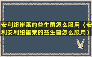 请注意,以上信息是一般性的建议,具体产品的服用方法可能有所不同。务必遵循您所购买的安利纽崔莱益生菌产品的具体说明。如果您有任何疑问,建议联系安利纽崔莱的客服或咨询专业的医疗人员。
