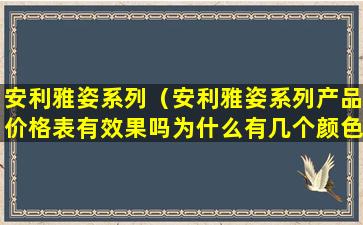 请注意,由于我是一个聊天机器人,我的知识截止日期是2023年4月,所以关于安利雅姿系列的最新产品信息和市场动态,建议直接咨询安利公司或访问其官方网站获取最新资讯。
