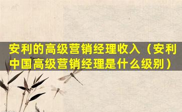 安利的收入结构和奖励政策可能会随时间和地区的不同而有所变化,因此具体的收入情况需要参考安利公司最新的政策和个人的实际业绩。如果你对安利高级营销经理的具体收入情况感兴趣,建议直接咨询安利公司或其官方渠道获取最准确的信息。