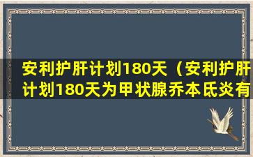 安利(Amway)是一家全球知名的直销公司,提供多种健康和营养产品。关于“安利护肝计划180天”是否对甲状腺乔本氐炎(Hashimoto's thyroiditis)有帮助,需要从几个方面来考虑: