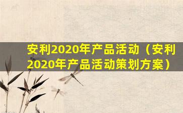 截至我的知识更新日期(2023年),关于“安利2020年产品活动”的具体信息可能已经不再是最新的。安利(Amway)是一家全球知名的直销公司,以销售健康、美容和家居护理产品而闻名。在2020年,安利可能举办了一系列的产品推广活动,以吸引消费者和直销商。