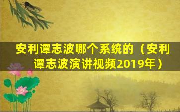 安利(Amway)是一家全球知名的直销公司,提供多种健康、美容和个人护理产品。谭志波是安利中国的一位知名经销商,他所在的系统通常指的是安利公司的某个销售团队或网络。