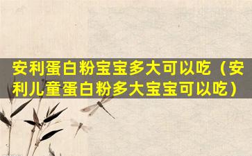 安利(Amway)是一家知名的直销公司,其产品线包括营养补充品,如蛋白粉。对于婴幼儿来说,他们的营养需求主要应通过母乳或婴儿配方奶粉来满足,因为这些食物是为他们特定的生长和发育需求设计的。