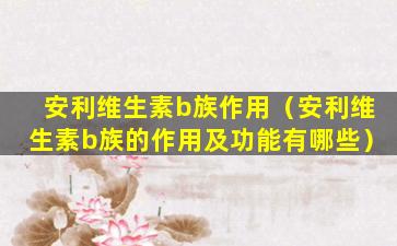 安利(Amway)是一家全球知名的直销公司,其产品线包括多种维生素和矿物质补充剂。维生素B族是一组水溶性维生素,包括维生素B1(硫胺素)、维生素B2(核黄素)、维生素B3(烟酸)、维生素B5(泛酸)、维生素B6(吡哆醇)、维生素B7(生物素)、维生素B9(叶酸)和维生素B12(钴胺素)。这些维生素在人体内扮演着多种重要角色。