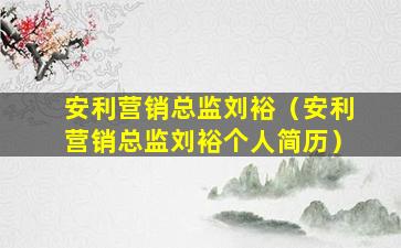 截至我所知的信息,没有关于“安利营销总监刘裕”的具体公开资料。安利(Amway)是一家全球知名的直销公司,专注于健康、美容和个人护理产品。安利的营销总监通常负责公司的市场营销策略、品牌推广和销售增长等方面的工作。