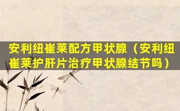 安利纽崔莱护肝片主要用于保护肝脏,帮助肝脏解毒,改善肝功能。它通常含有一些对肝脏有益的成分,如水飞蓟素、蒲公英提取物等。关于安利纽崔莱护肝片是否能治疗甲状腺结节,目前没有科学证据表明它具有这样的效果。