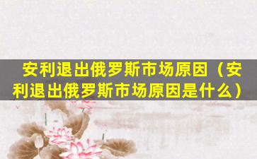 安利(Amway)是一家全球知名的直销公司,其产品包括营养补充品、个人护理品和家庭清洁用品等。安利退出俄罗斯市场可能有多种原因,但截至我所知的信息,安利并没有官方声明退出俄罗斯市场。因此,以下分析是基于一般性考虑,而不是针对安利具体情况的分析。