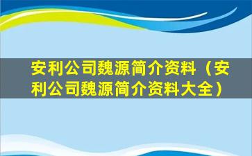 至于“魏源”,这个名字在中国历史上指的是一位著名的思想家、历史学家和地理学家,生活在清朝时期,与安利公司没有直接关联。如果您是在寻找与安利公司相关的“魏源”,可能需要提供更多的上下文信息,因为这个名字可能是一个现代人物的名字,而不是一个广为人知的历史人物。