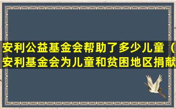 截至我所知的信息截止日期(2023年),安利基金会(Amway Foundation)是一个致力于支持儿童和家庭的慈善组织,它在全球范围内开展了许多慈善项目。安利基金会通常会与当地的非营利组织合作,为儿童提供教育、健康和营养支持,以及为贫困地区提供必要的资源和援助。