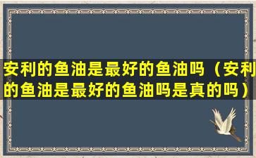 关于“安利的鱼油是最好的鱼油”这一说法,需要从几个方面来考虑: