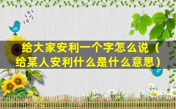 "给大家安利一个字怎么说好听" 这句话的意思是询问如何用好听的方式来推荐或介绍一个字。在中文里,"安利"通常是指推荐或介绍某样东西给他人,源自英文单词 "Amway"(安利公司),后来被广泛用于网络语言中,意指推荐好物。
