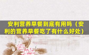 安利(Amway)是一家全球性的直销公司,提供多种健康、美容和家居产品,其中包括营养补充品和早餐产品。关于“安利营养早餐到底有用吗”的问题,需要从几个方面来考虑: