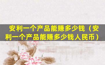 由于安利的收入是基于个人业绩的,因此无法提供一个具体的数字来回答“安利一个产品能赚多少钱人民币”。如果你对成为安利销售代表感兴趣,建议直接联系安利公司或其销售代表获取更详细的信息,并了解如何通过销售安利产品来赚取收入。