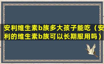 安利(Amway)是一家全球知名的直销公司,其产品包括维生素和矿物质补充剂。关于安利维生素B族补充剂的适用年龄,通常产品包装上会有明确的指示。一般来说,维生素B族补充剂是为成人设计的,因为成人的营养需求与儿童不同。