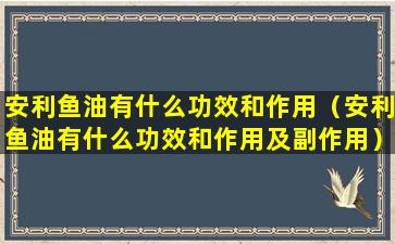 安利(Amway)是一家国际性的直销公司,其产品线包括营养补充品,其中鱼油是一种常见的补充品。鱼油主要含有Omega-3脂肪酸,特别是EPA(二十碳五烯酸)和DHA(二十二碳六烯酸),这些成分对人体健康有多方面的益处。