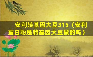 关于“安利转基因大豆315”这一说法,目前没有官方的证实或详细信息。安利(Amway)是一家国际知名的直销公司,主要销售健康、美容和家居护理产品。如果有关安利与转基因大豆的信息,建议您查阅官方发布的消息或通过官方渠道进行核实。