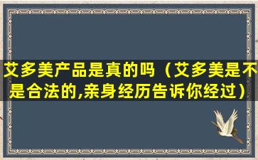 关于“艾多美产品是真的吗”这个问题,可以这样回答: