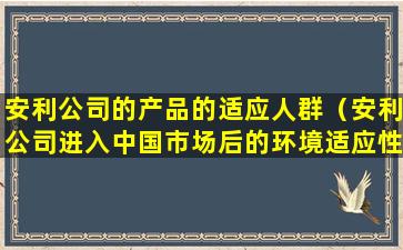 安利公司(Amway)是一家美国的直销公司,主要销售健康、美容和家居护理产品。自1995年进入中国市场以来,安利公司经历了显著的环境适应过程,以满足中国市场的特定需求和法规。