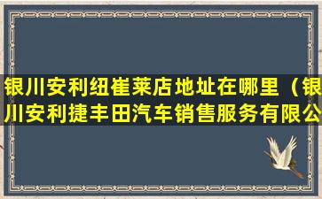 如果您想了解银川市安利纽崔莱店的地址,您可以尝试以下几种方法:
