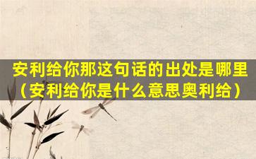 这句话“安利给你那这句话的出处是哪里”中的“安利”一词,源自英文单词“Amway”,是一家美国的直销公司。在中国网络用语中,“安利”被引申为推荐或介绍的意思,通常用于推荐某种产品、服务或信息。