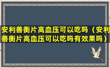 安利善衡片是安利公司生产的一种营养补充品,主要成分包括大豆异黄酮、维生素E等,旨在帮助维持女性荷尔蒙平衡。关于高血压患者是否可以服用安利善衡片,以及其是否有效果,以下是一些建议: