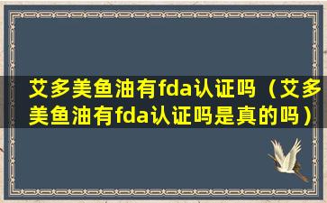 截至我的知识更新日期(2023年),关于“艾多美鱼油”是否拥有美国食品药品监督管理局(FDA)的认证,我无法提供确切的信息。FDA认证通常指的是产品通过了FDA的审批流程,但这并不意味着所有健康补充品或食品都会获得FDA的正式认证。