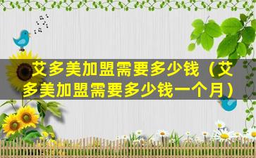 截至我的知识更新日期(2023年),艾多美(Amway)是一家全球知名的直销公司,提供多种健康、美容和个人护理产品。关于加盟艾多美需要多少钱,这个问题的答案可能会随着时间和地区的不同而有所变化。