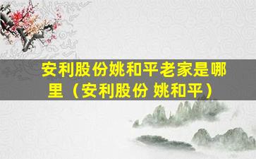 至于姚和平(Yao Heping),这个名字可能指的是某个个人,但没有足够的信息来确定这个人与安利股份的具体关系,或者他的老家在哪里。如果姚和平是安利股份的高管或相关人物,可能需要查阅最新的公司资料或新闻报道来获取准确信息。