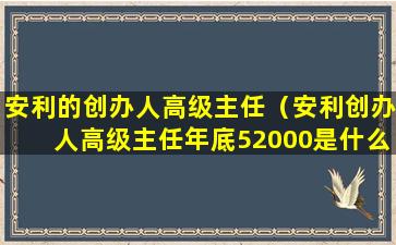 如果您提到的“创办人高级主任年底52000”是指某个具体的奖金计划,那么这可能是基于达到特定业绩目标或者级别后,公司给予的一次性奖金或者年终奖励。这个数额和条件需要直接咨询安利公司或者您的上级领导来获取准确信息,因为这些信息通常不会公开详细披露,且可能随时调整。
