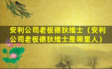 安利(Amway)是一家全球知名的直销公司,其创始人是理查·狄维士(Richard DeVos)和杰·范·安德尔(Jay Van Andel)。理查·狄维士的儿子,道格·狄维士(Doug DeVos)和德·狄维士(Dirk DeVos)都曾在公司担任重要职务。德·狄维士(Dirk DeVos)可能不是公众人物,因此关于他的信息可能不多。如果您指的是道格·狄维士,他曾是安利公司的总裁,并在公司的全球运营中扮演了重要角色。