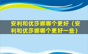 安利(Amway)和优莎娜(USANA Health Sciences)都是知名的直销公司,它们提供各种健康、营养和个人护理产品。两家公司都有自己的产品线和市场策略,因此很难一概而论哪个更好,这取决于个人的需求、偏好和目标。
