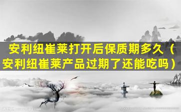 安利纽崔莱(Amway Nutrilite)是一种营养补充品,其保质期通常会在产品包装上标明。一旦打开,产品的保质期可能会受到影响,因为接触空气和湿度可能会导致产品更快地变质。