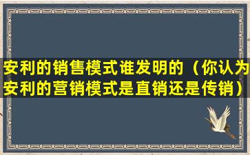 安利(Amway)是一家全球知名的直销公司,其销售模式是基于多层次营销(Multi-Level Marketing,简称MLM)或网络营销(Network Marketing)的模式。这种模式并不是由安利公司发明的,但安利是这种模式中最成功的实践者之一。