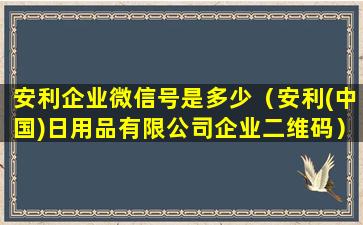 截至我的知识更新日期(2023年),安利(Amway)是一家全球知名的直销公司,其官方企业微信号可能会随时间变化,因此我无法提供最新的微信号。为了获取安利的官方企业微信号,您可以采取以下几种方式: