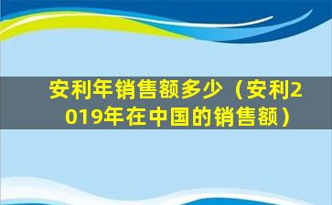 截至我所知的信息截止日期(2023年),安利(Amway)2019年在中国的销售额数据并未公开详细披露。安利是一家全球知名的直销公司,其销售数据通常不会被详细公开,尤其是在特定国家或地区的销售额。