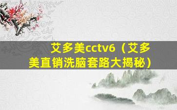 截至我的知识更新日期(2023年),"艾多美cctv6"并不是一个我所熟知的命名实体。CCTV6是中国中央电视台的电影频道,主要播放电影和相关的电影节目。而"艾多美"可能是指某个品牌、公司或者产品,但没有足够的信息来确定它与CCTV6的具体关联。