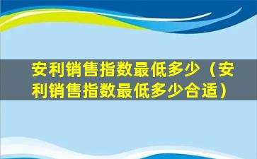 安利(Amway)是一家全球性的直销公司,其销售指数通常是根据销售业绩来计算的。安利并没有公开一个具体的“最低销售指数”,因为销售业绩会根据不同的市场、产品、销售策略以及个人销售能力等因素而有所不同。