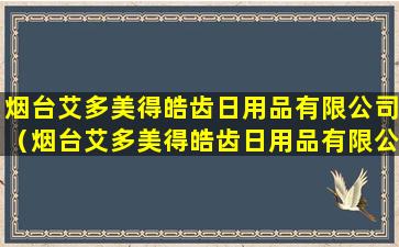 烟台艾多美得皓齿日用品有限公司是一家位于中国山东省烟台市的企业,专注于日用品的生产和销售,特别是与口腔护理相关的产品。该公司可能涉及牙膏、牙刷、漱口水等口腔卫生产品的制造和分销。