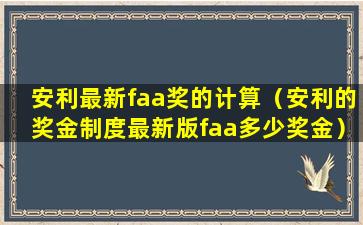 具体的计算方法和要求可能会随着时间和地区的不同而有所变化。因此,如果您想了解最新的FAA奖励计算方法,建议直接咨询安利的官方渠道或与您的上级直销商联系,以获取最准确和最新的信息。
