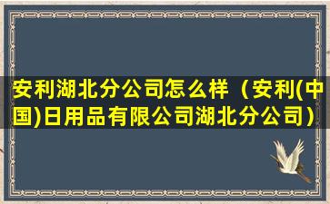 关于“安利湖北分公司怎么样”,这个问题比较宽泛,可以从几个不同的角度来考虑: