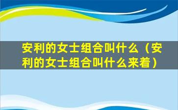 安利(Amway)是一家全球知名的直销公司,它并没有一个特定的“女士组合”。安利提供多种产品,包括健康、美容、家居护理等,并且通过直销模式销售这些产品。如果你指的是安利旗下的某个产品系列或者品牌,请提供更具体的信息,以便给出准确的答案。如果是指的是安利销售团队中的女性成员组成的团队,那么这样的团队可能会有自己的名称,但这并不是由安利公司官方指定的。